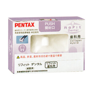 歯槽骨が露出した抜歯創へ充填し、止血、迷入防止等の創面保護ならびに肉芽形成を促す抜歯創用保護材です。原料に抗原性の少ないアテロコラーゲンを使用したスポンジ形態の製品で、抜歯創に充填しやすい形状をしており、無菌製品のため直ちに使用できます。熱処理による架橋のため、コラーゲン本体の生体親和性を損なうことがありません。