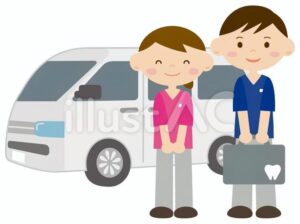当院の院長が自ら出向きます。治療は歯科医師、歯石取りクリーニングは衛生士が行います。※訪問時間は事前に電話アポイントが必要です。044-299-8112(診療時間内)