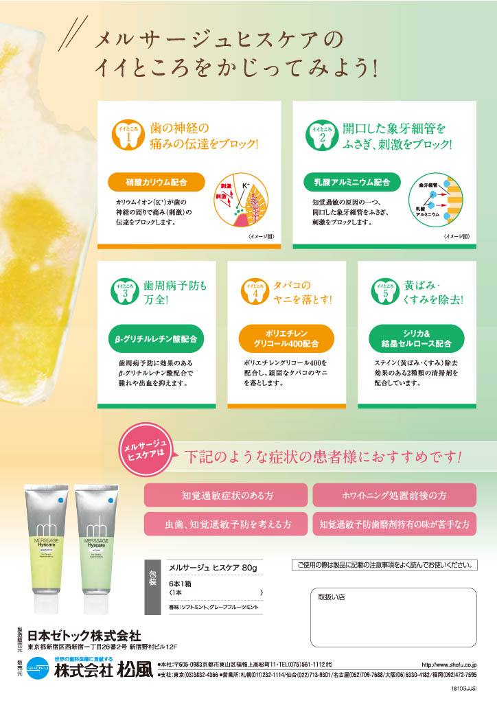 <知覚過敏予防ハミガキ(フッ素・キシリトール配合)>